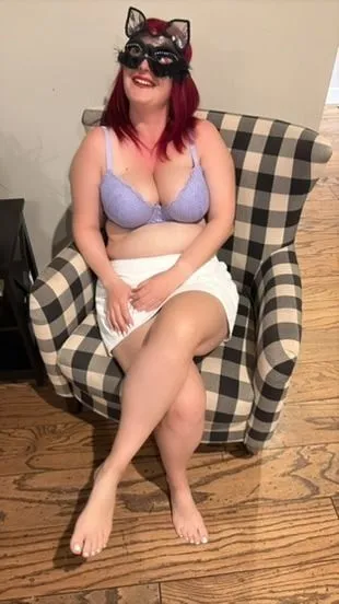 Aujourd’hui je prends mes aises… assise sur mon fauteuil en lingerie et mini-jupe, je laisse deviner juste ce qu’il faut… 👀 Viens t’installer avec moi, tu n’auras pas envie de me quitter 😈💕