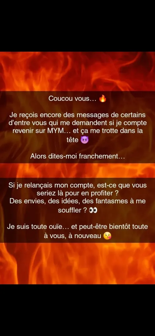 4 ans, c’est long… et mon corps a changé. 😅🔥 Je ne suis plus la même qu’avant, et c’est tant mieux. Des courbes plus marquées, un regard plus assumé, une énergie différente… mais toujours moi, en version plus sauvage 😈 Si je reviens, c’est avec ce nouveau corps, cette nouvelle confiance… et l’envie de vous en montrer un peu plus 😘 Vous êtes prêts ?