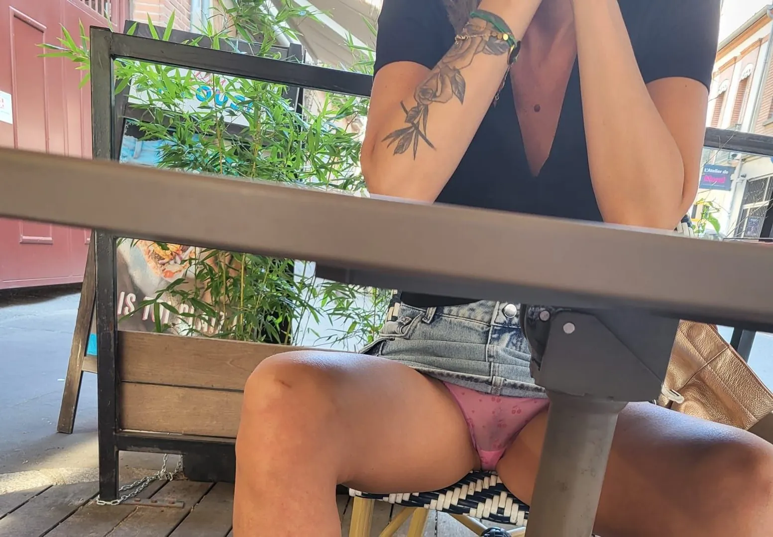 Petite pause repas en ville... combien de temps vais je garder mon string 🤪☺️💦