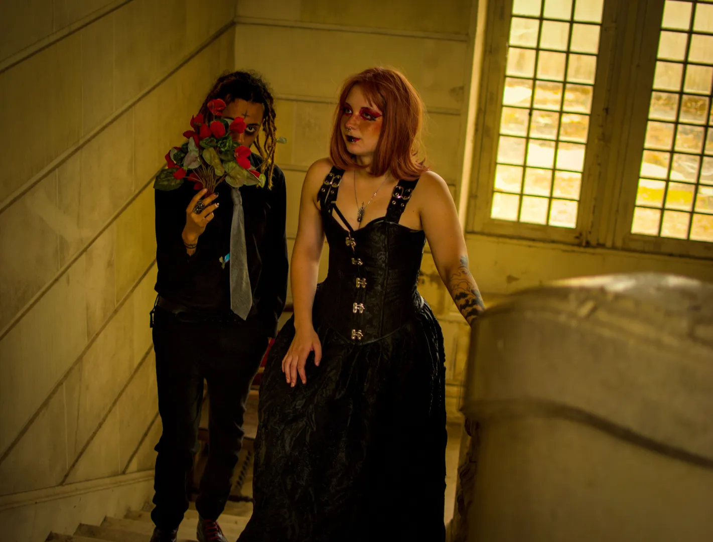 À deux dans l’escalier, les murmures s’élèvent, Entre pierre et secret, le silence s’achève ✨️
